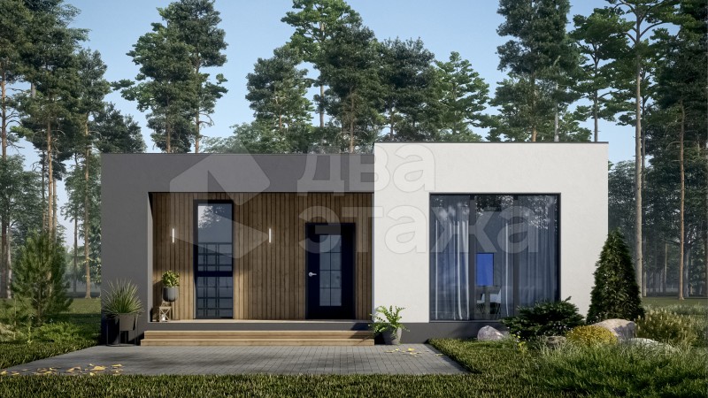 Неповторимый образ дома, благодаря гармоничной композиции нескольких объемов, в сочетании с плоской кровлей. Возможность выбора комбинации разных цветов фасада.