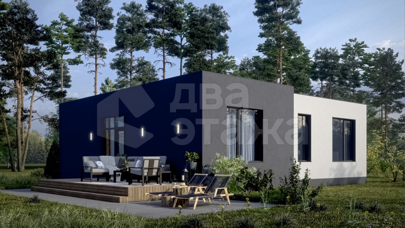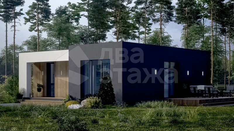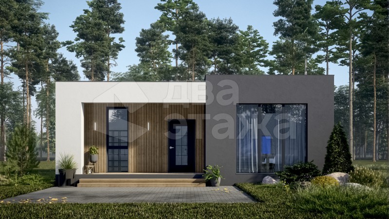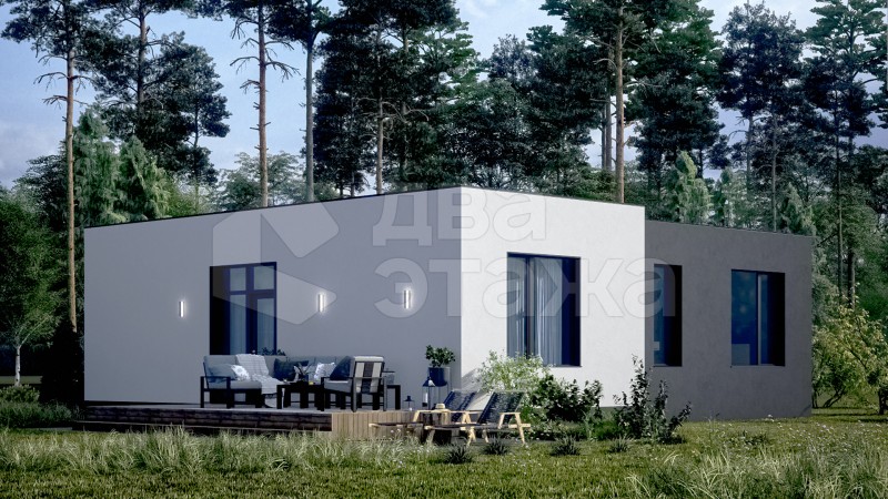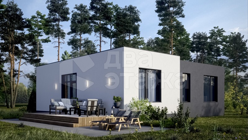 Одноэтажный просторный дом с плоской кровлей в современном минималистичном стиле площадью 85 кв.м