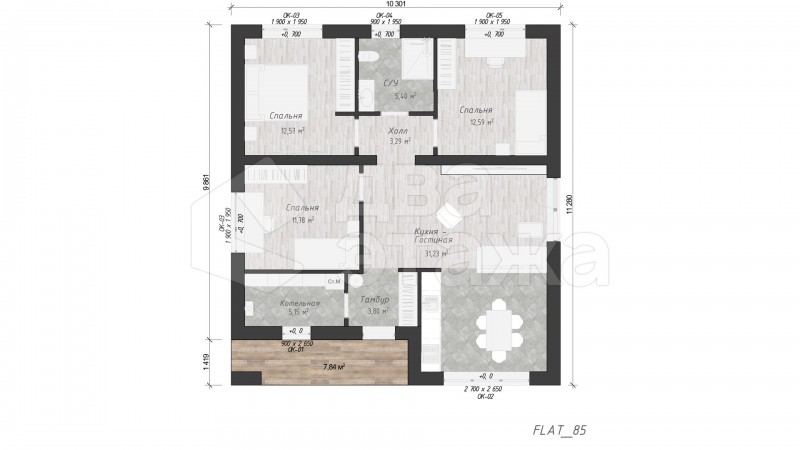 • Общая площадь 85 м2