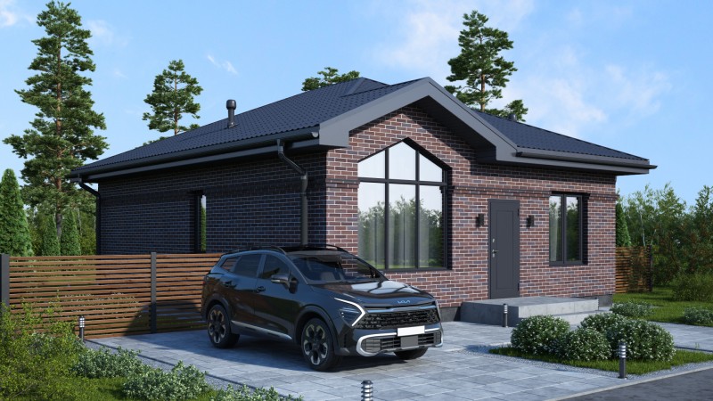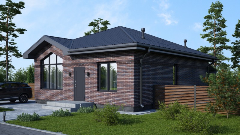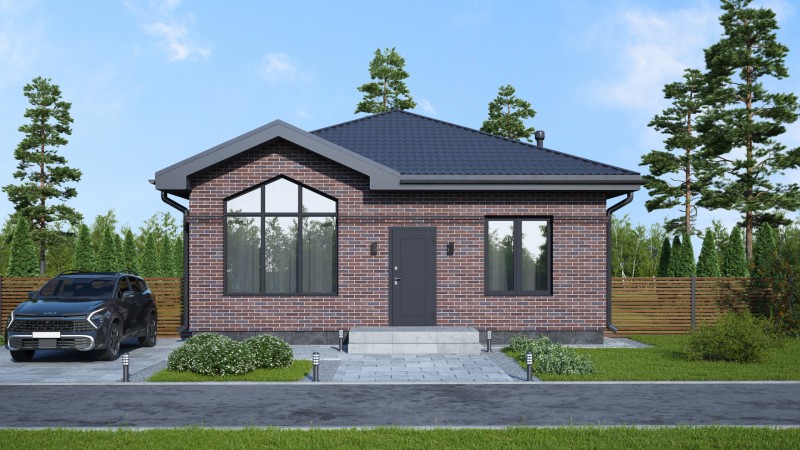 Компактный функциональный одноэтажный дом с оригинальным фасадом и интересной кровлей. Имеет три спальни, кухню гостиную с выходом на задний двор, котельную-постирочную, второй санузел можно разместить в котельной постирочной.